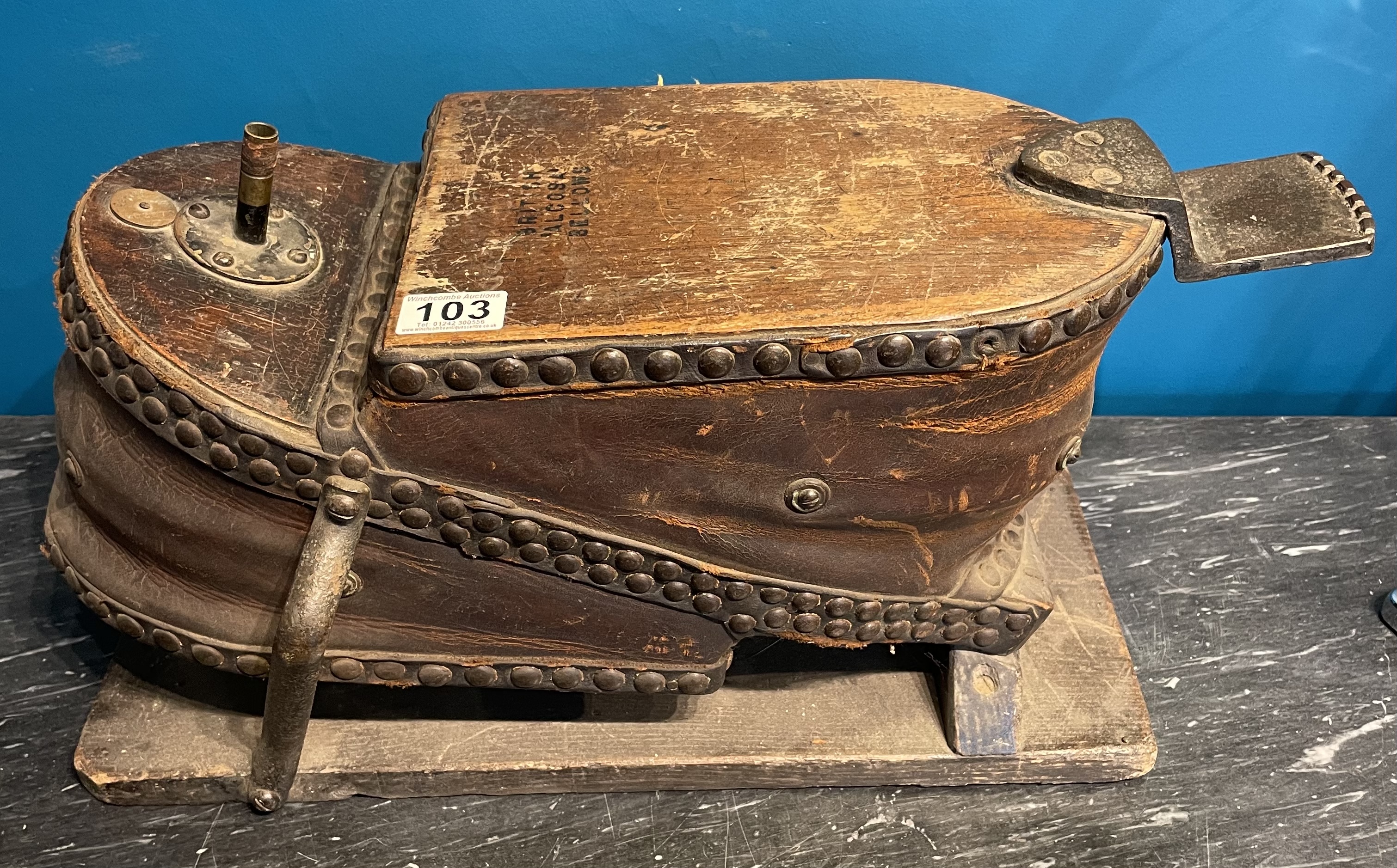 A Set Of Leather And Oak Blacksmiths Bellows. Still in working order.
