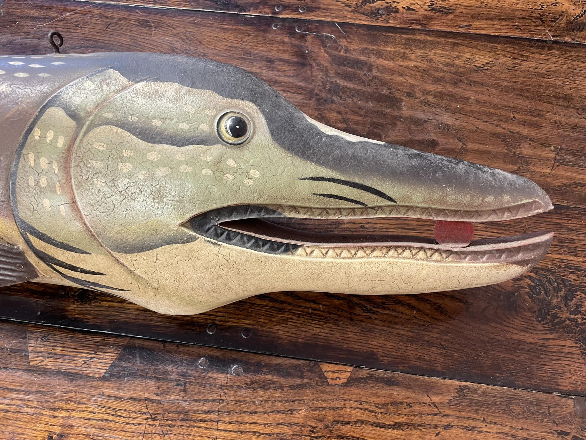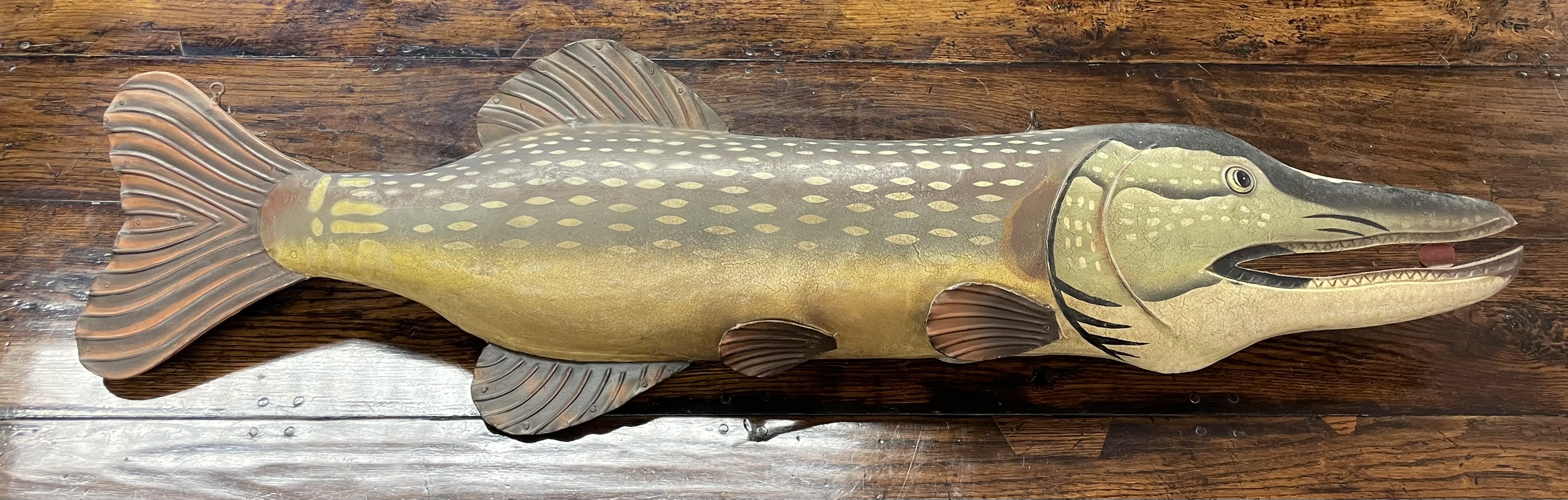 A Large Metal Pike that’s a possible Advertising / Shop Sign with eyerings to suspend the pike from above. Approx 123cm long