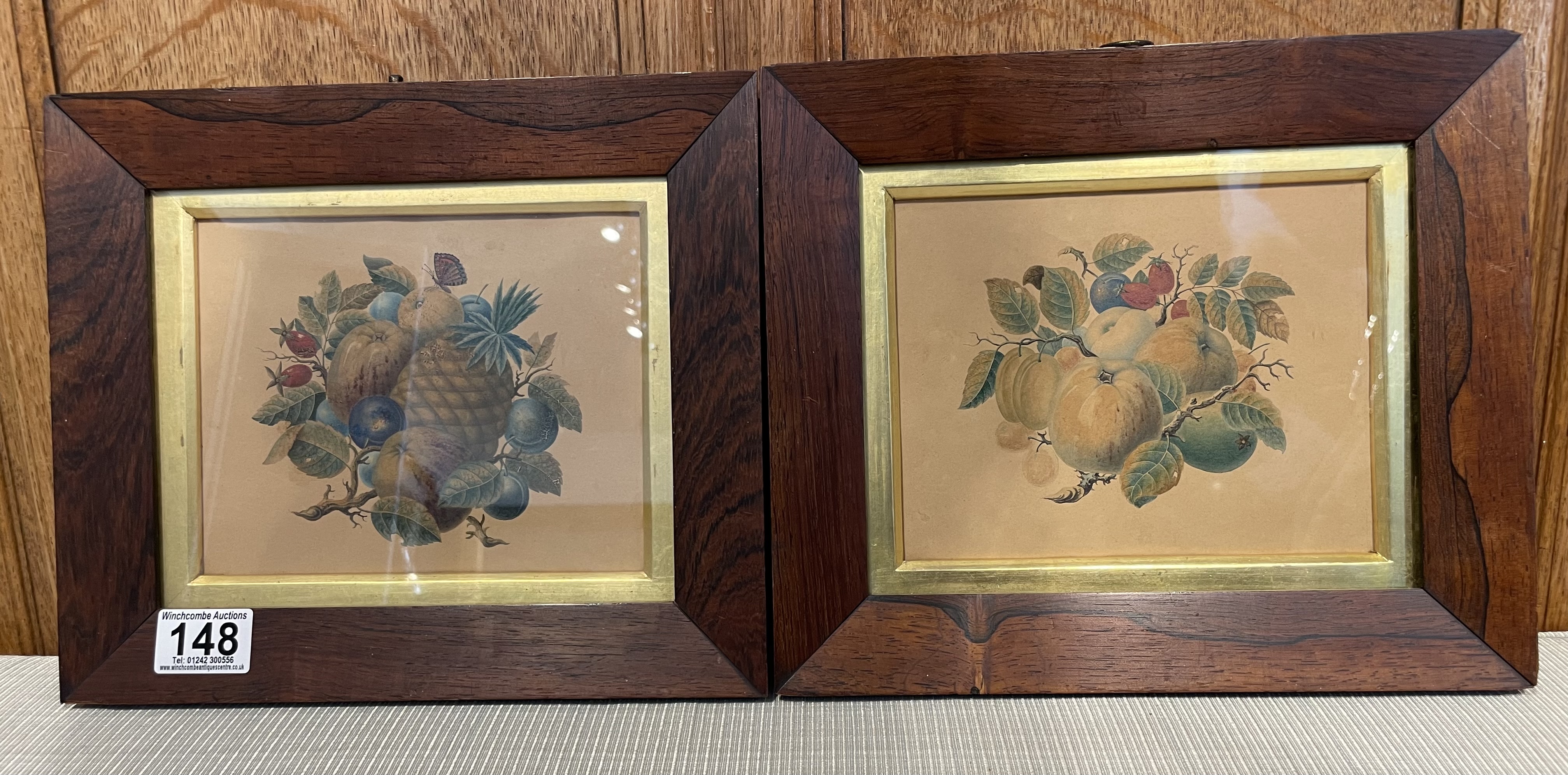 A Pair Of Fine 19th Century Still Life Pictures In Rosewood Frames