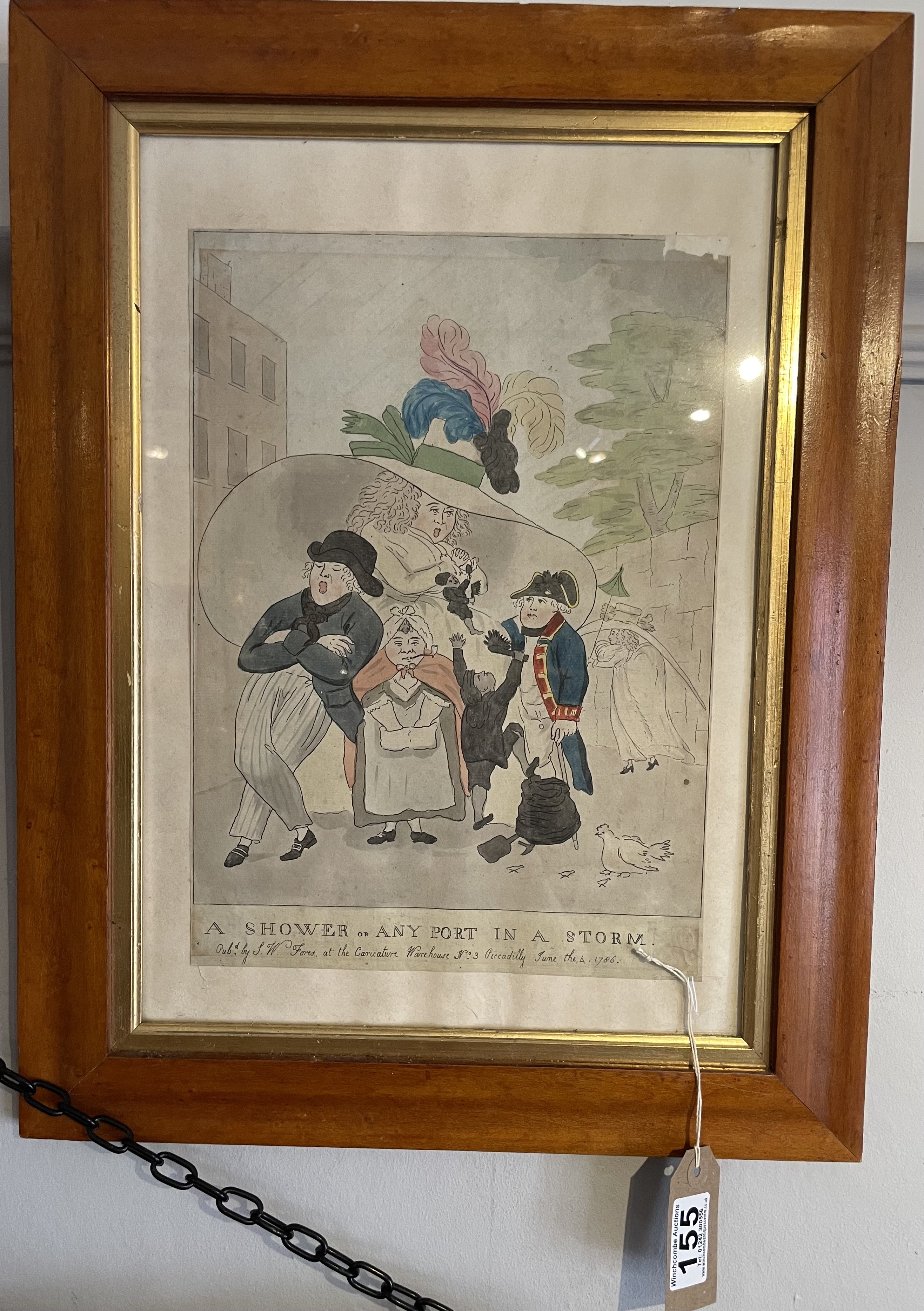 A Hand Coloured Comic Strip Titled ‘ A Shower Or Any Port In A Storm’ Dated 1786