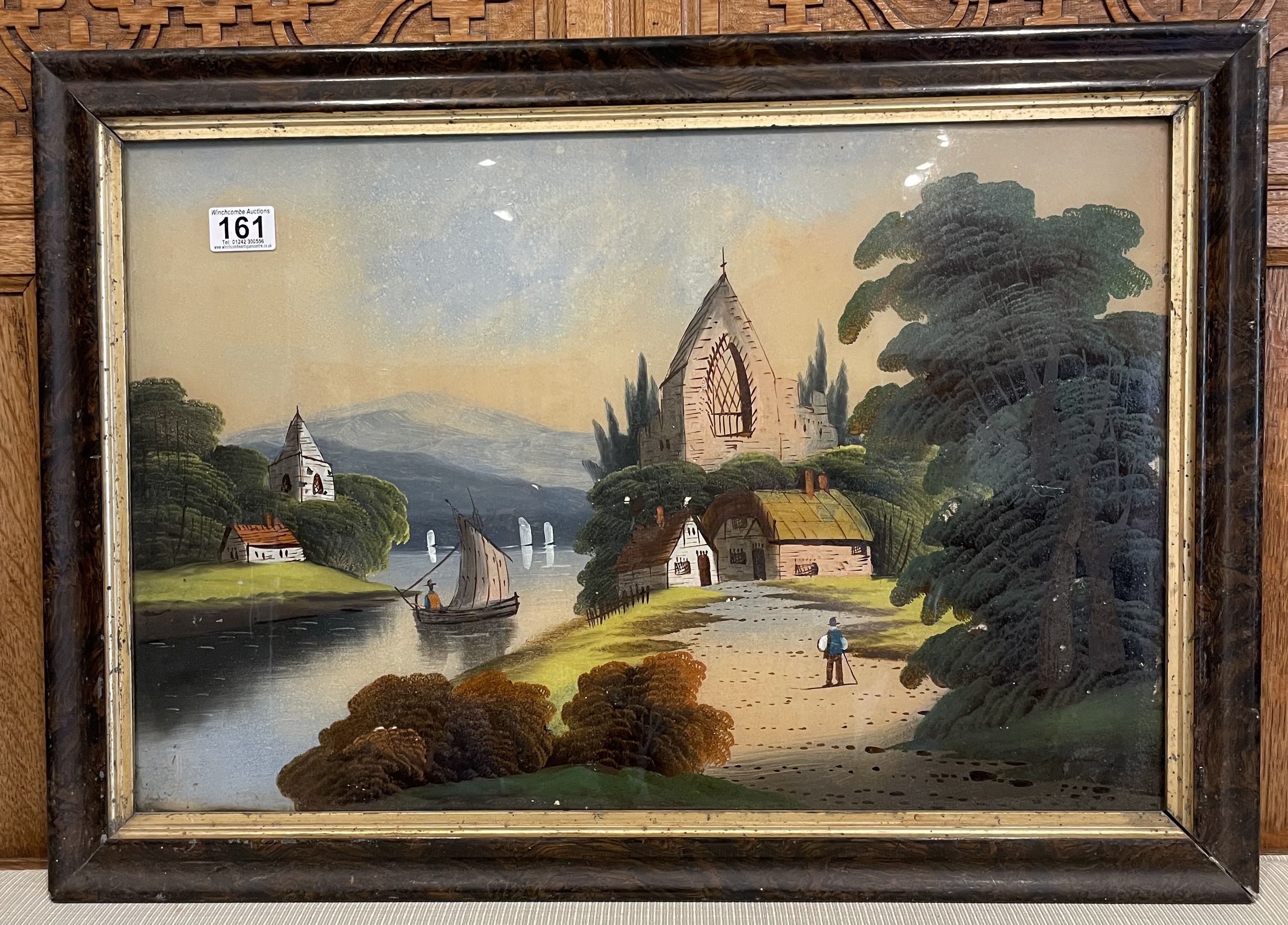 A Victorian Reverse Glass Painting Of A River Scene