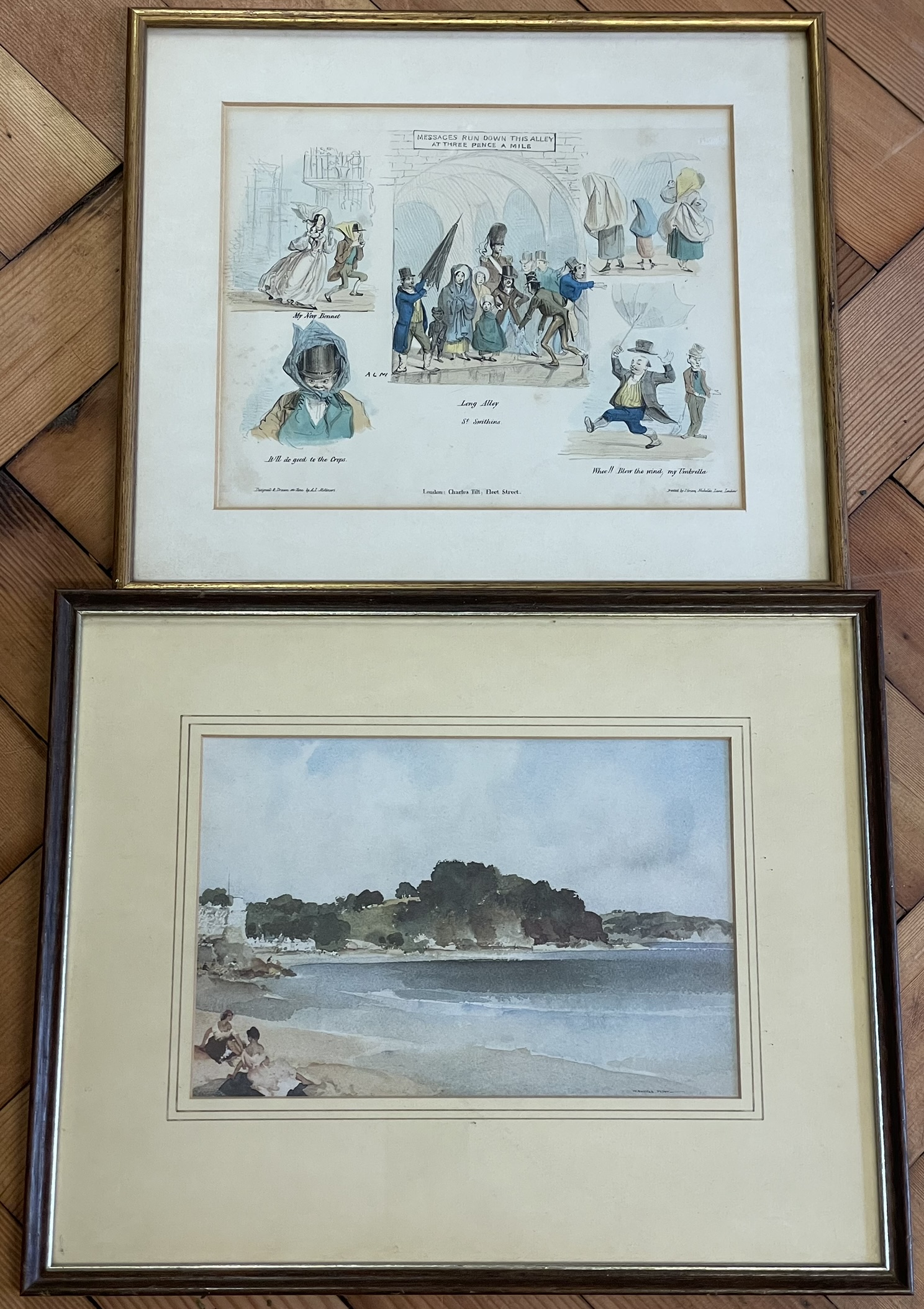 A Victorian Cartoon Titled ‘Message Run Down The Alley At Three Pence A Mile’. Together with a Russel Flint