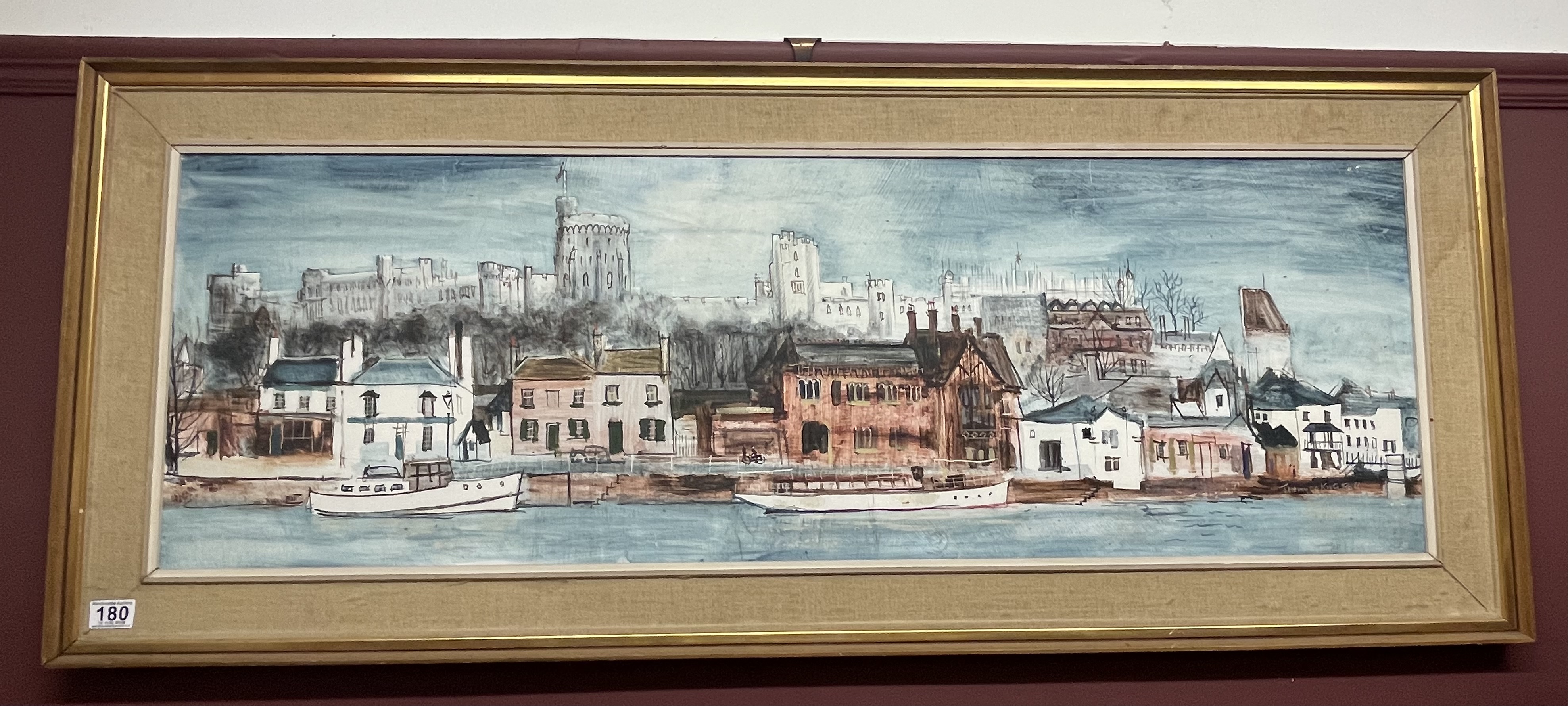 A Large Contemporary Oil On Board Toward Windsor Castle by J. King 136.7cm width