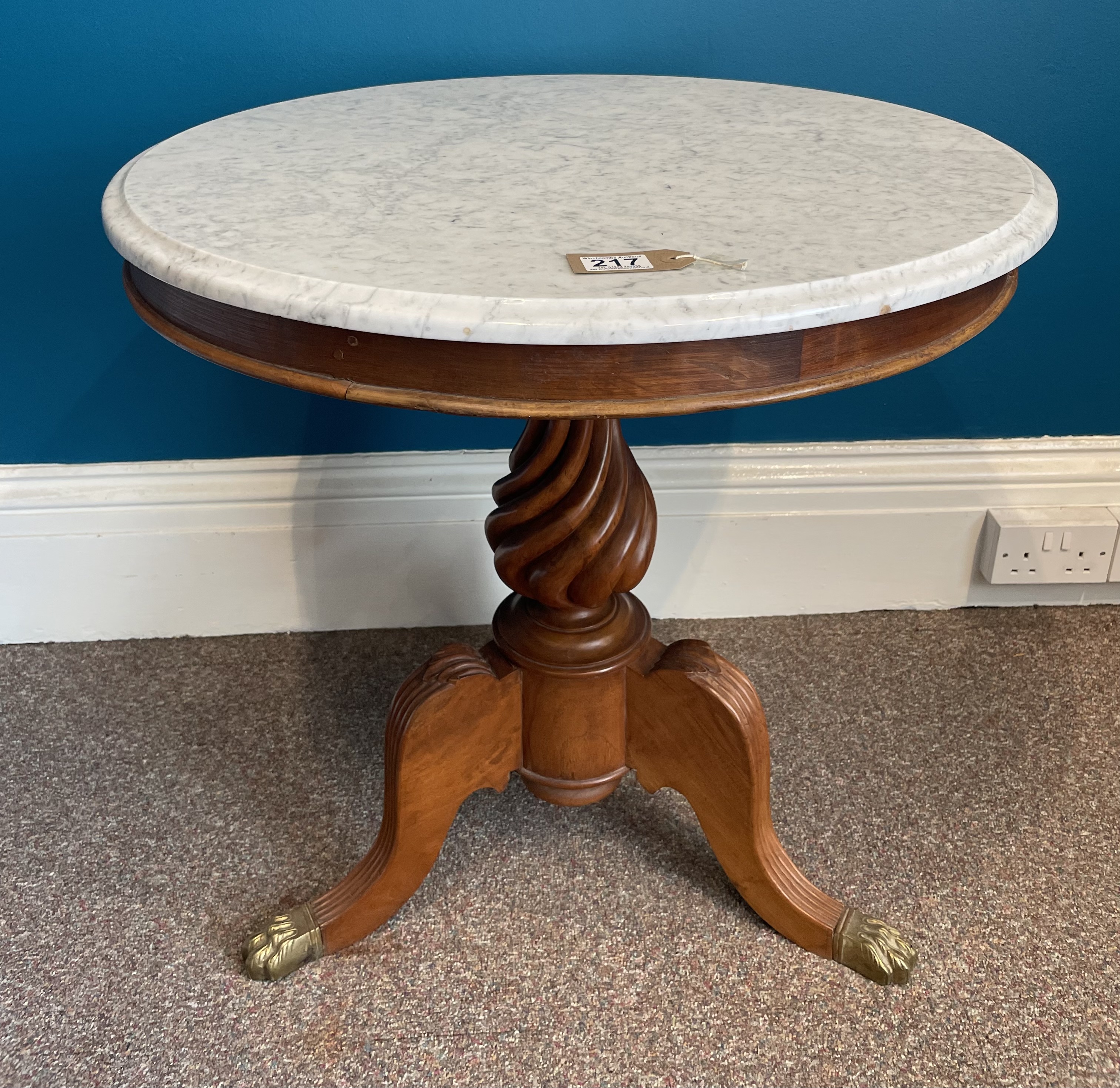 A Marble Topped Centre Table With Brass Feet