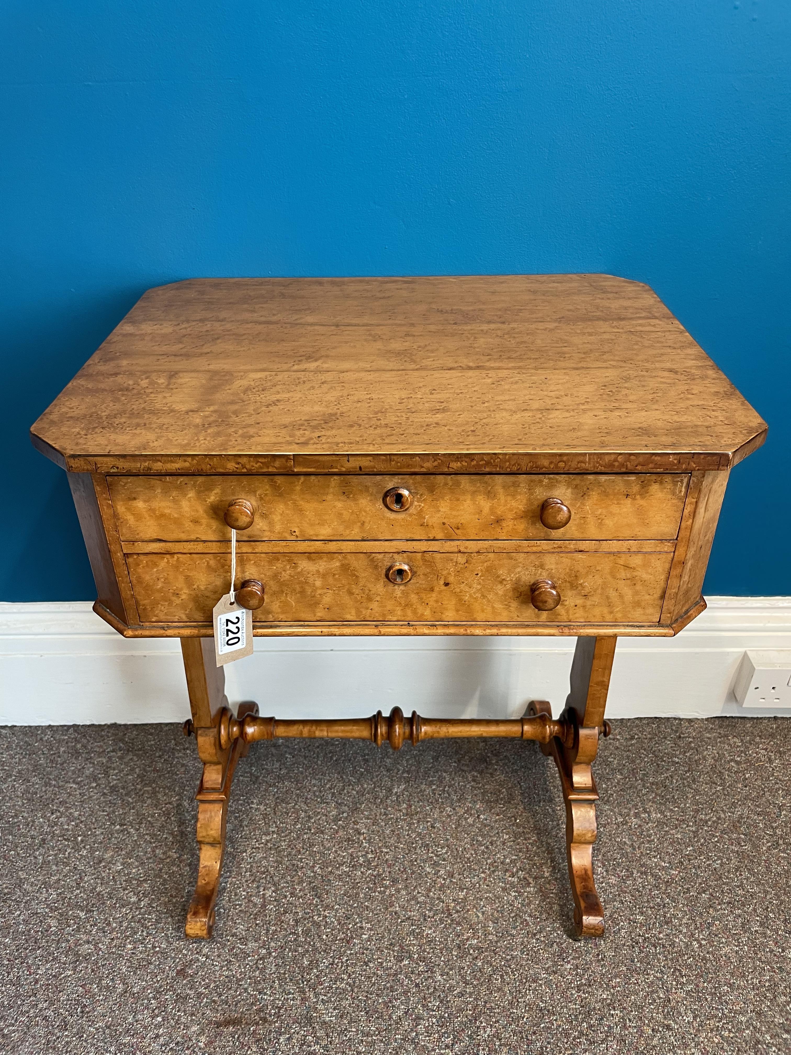 A Burr Maple Work Table With Two Drawers And Lidded Compartments To The Top One. Circa 1850