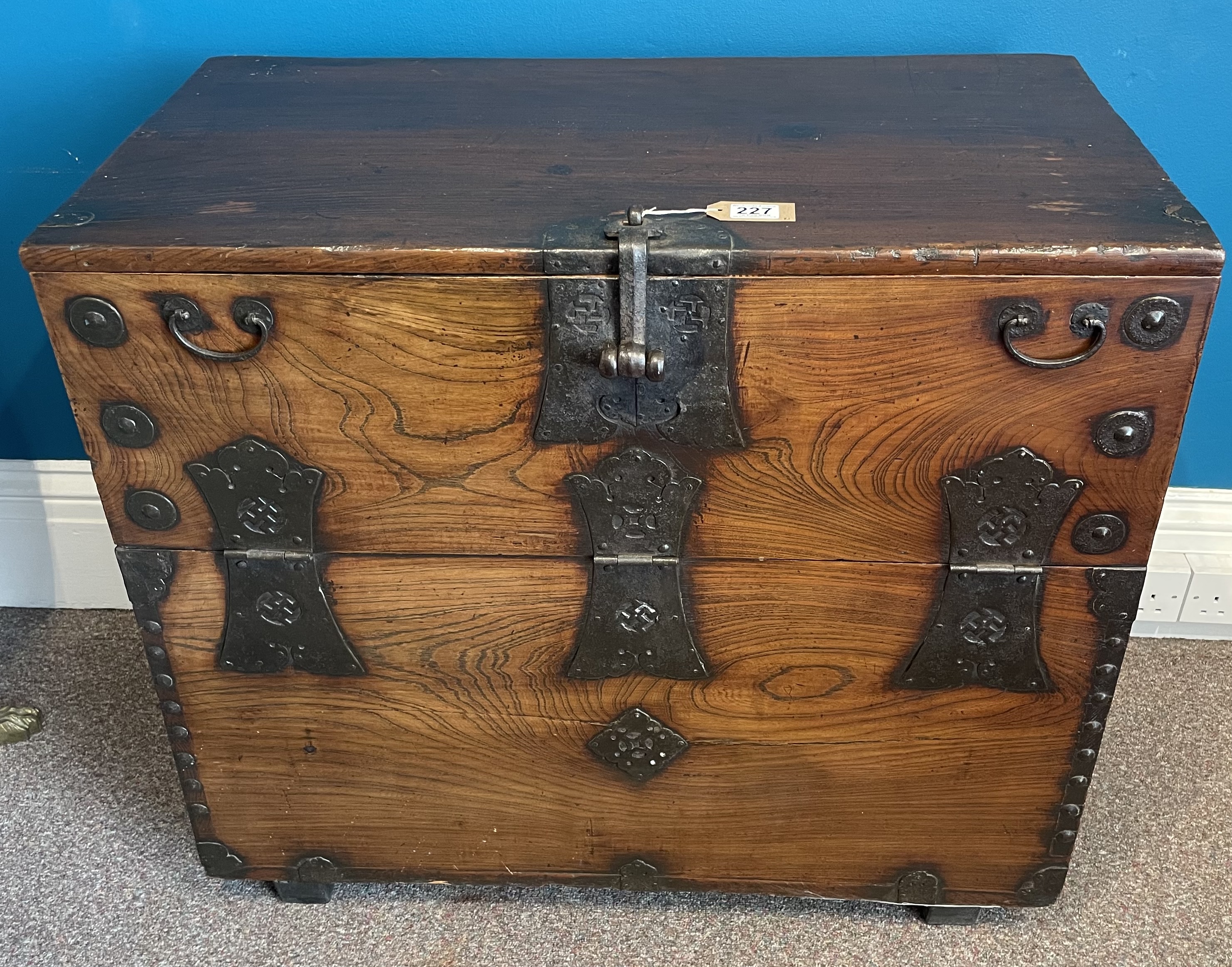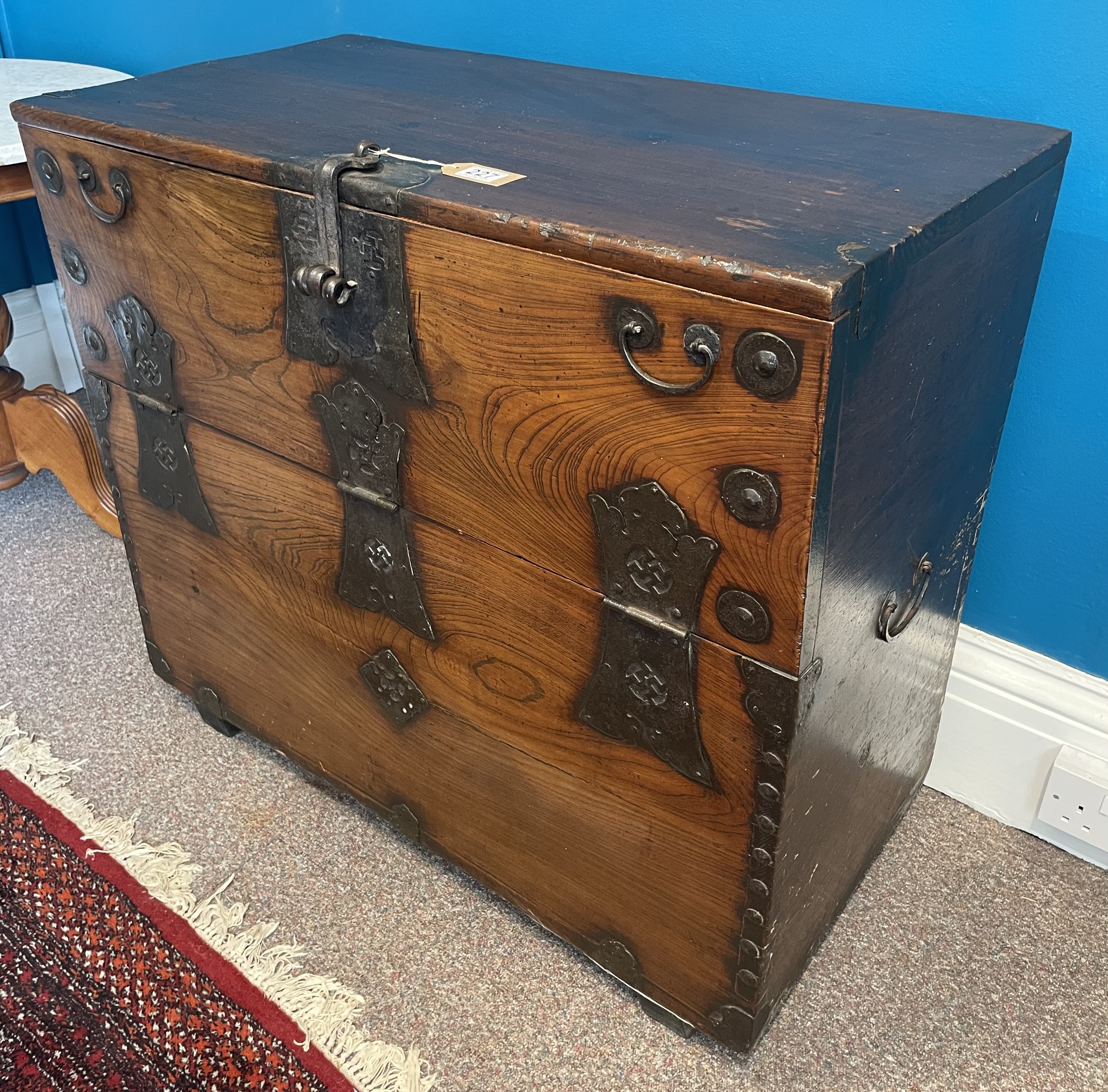 A 19th Century Korean Chest With Cast Iron Side Handles And Hinges