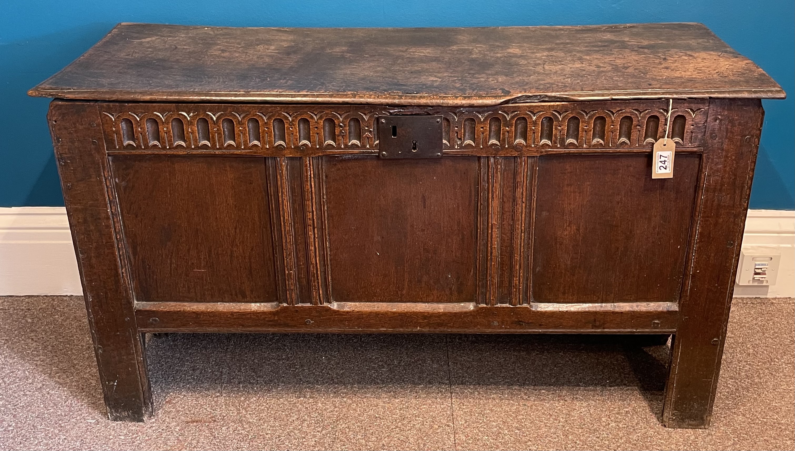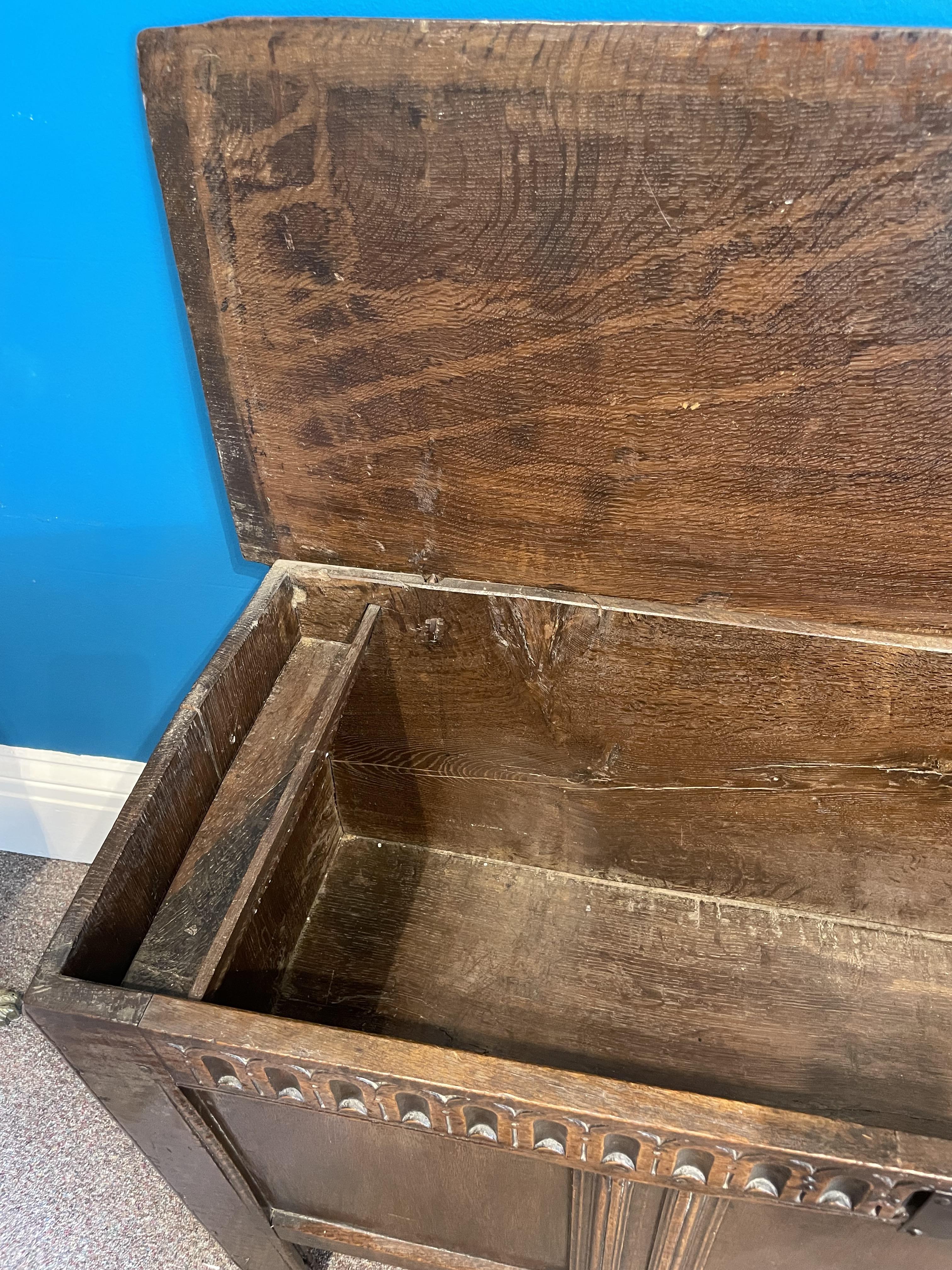 A 17th Century Oak Coffer With Single Plank Top And Candle Box Inside.