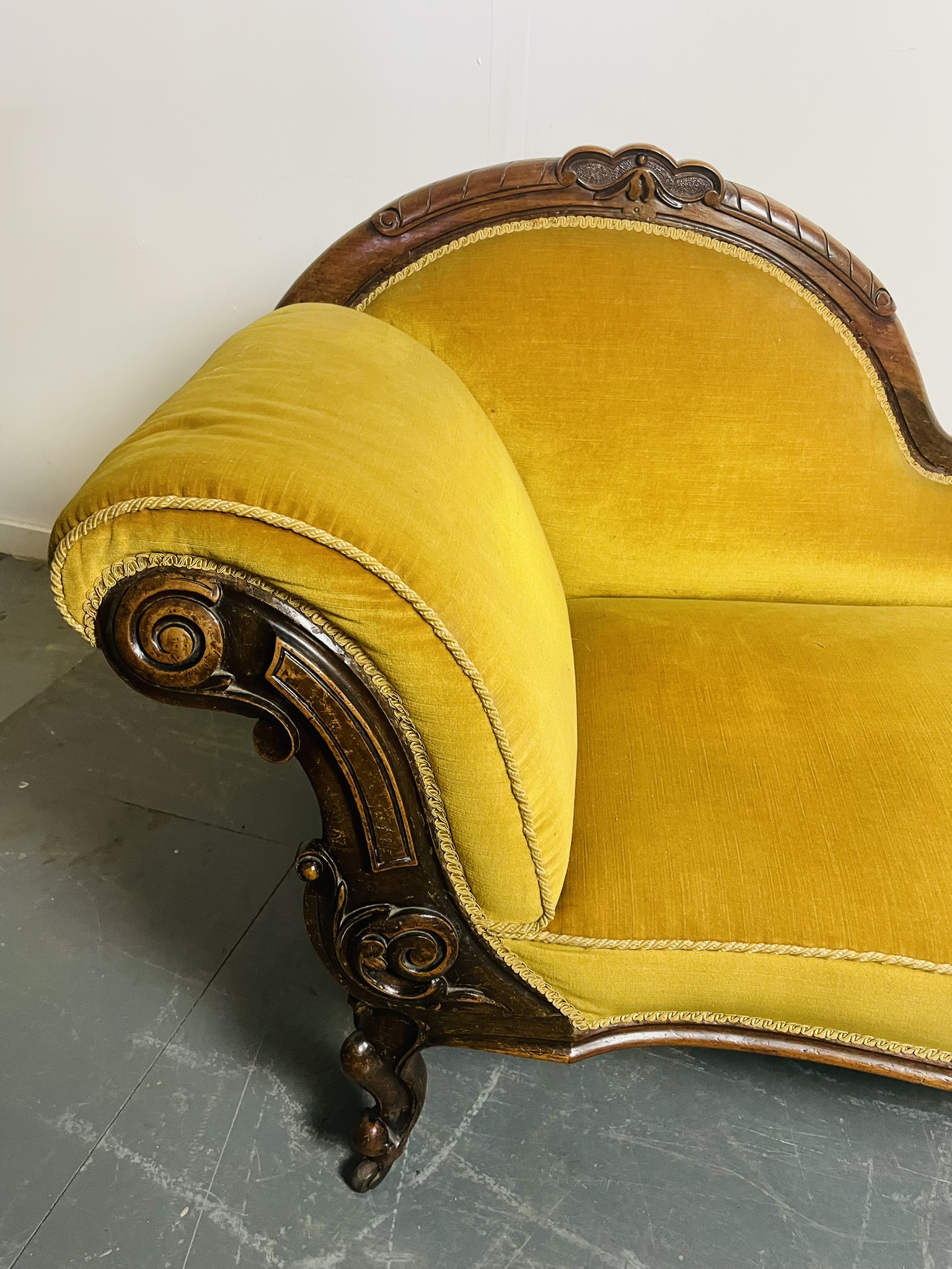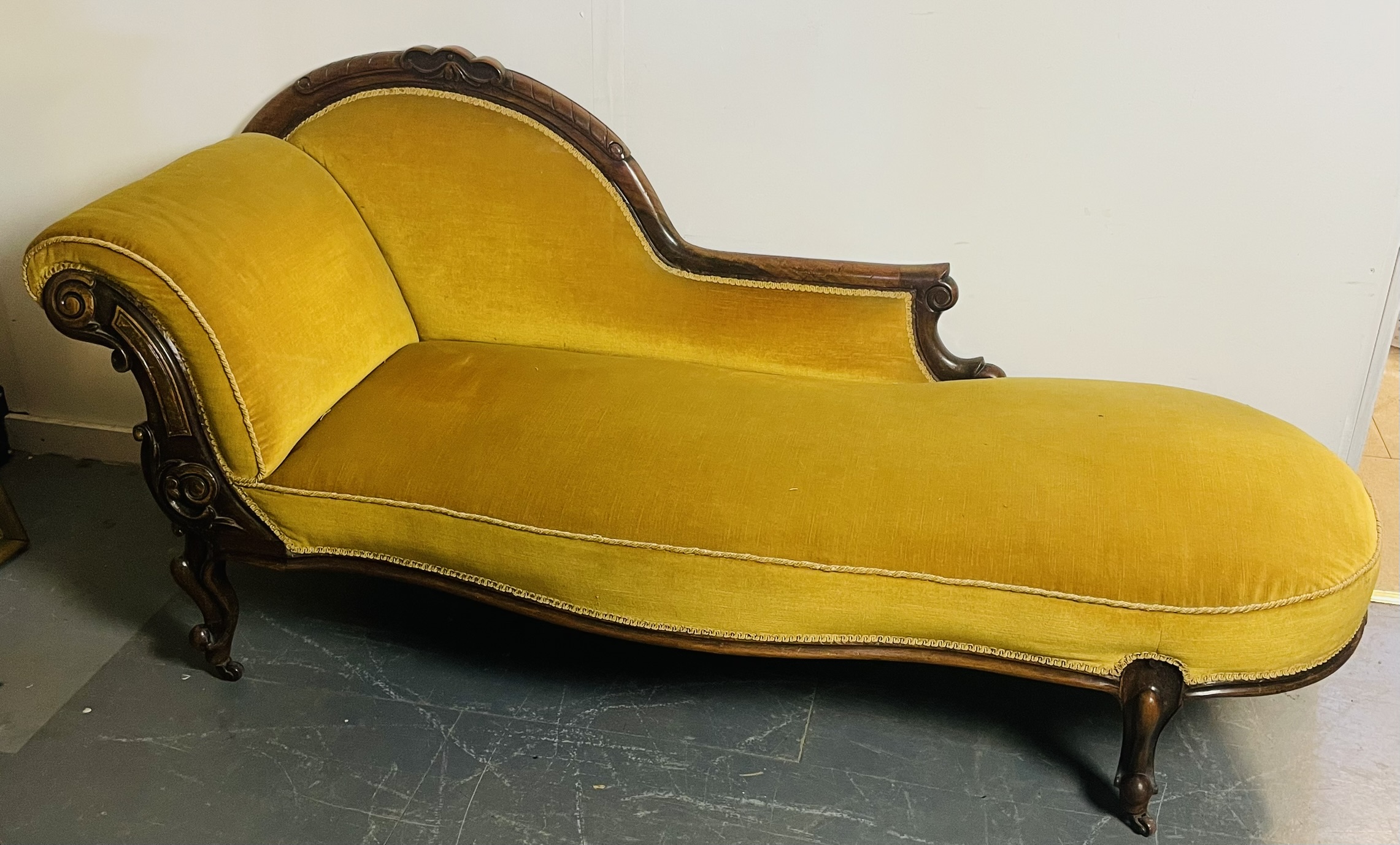 A Victorian Shezlong. This piece seems to be in good condition with a solid frame