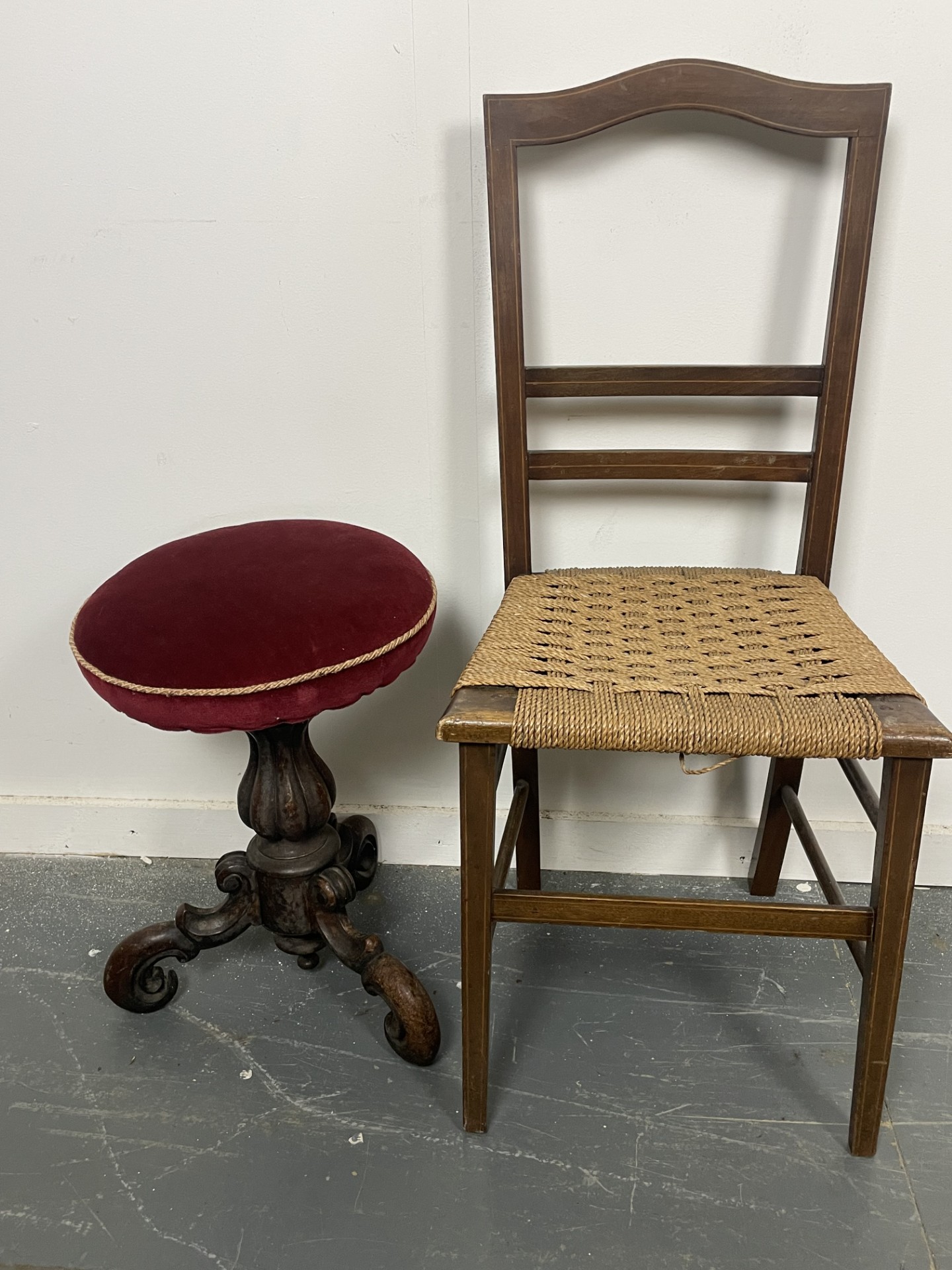 Victorian Piano Stool and Inlaid chair
