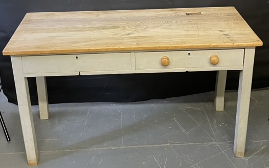 Pine School Desk With Two Drawers And Ink Well