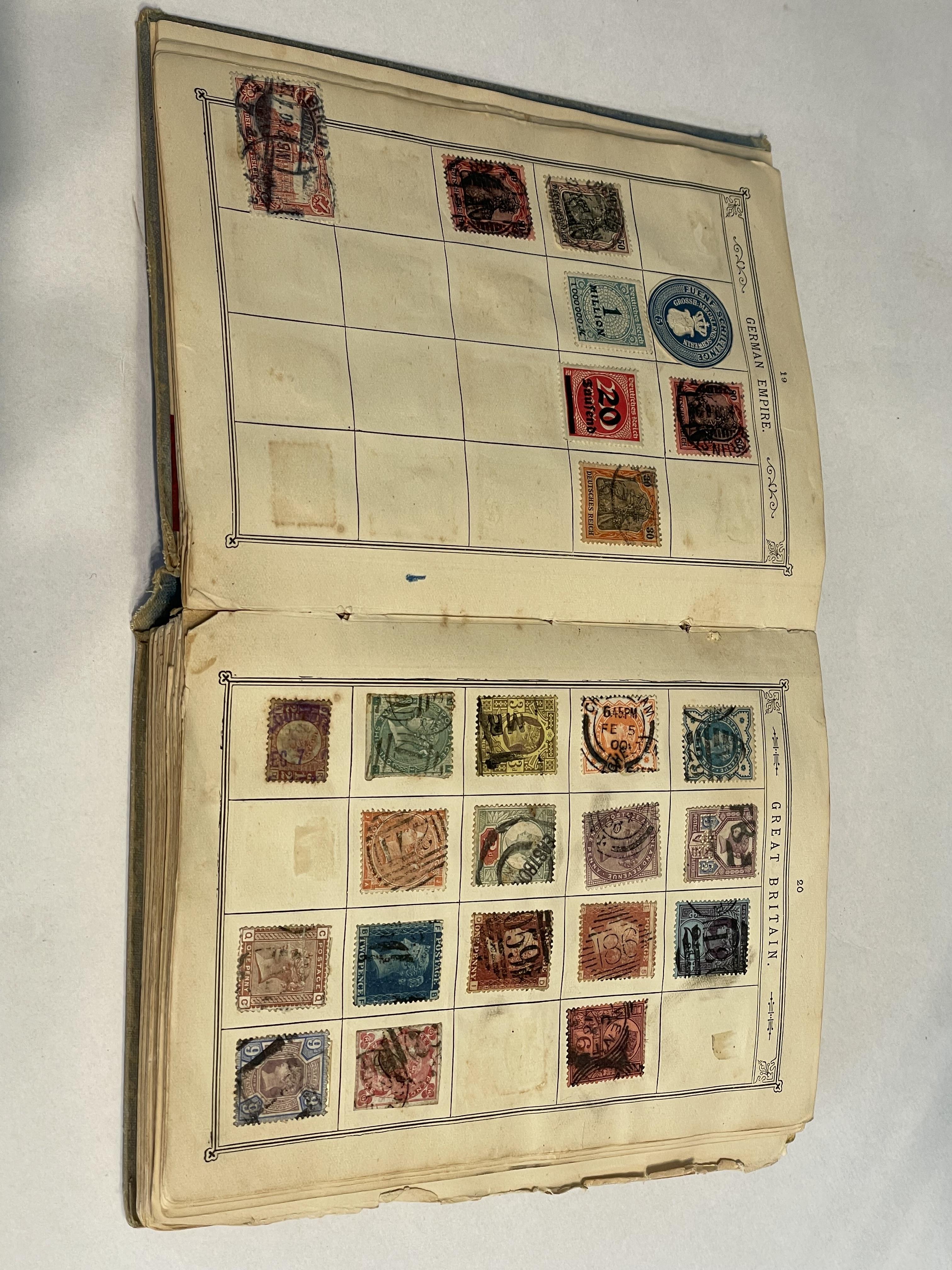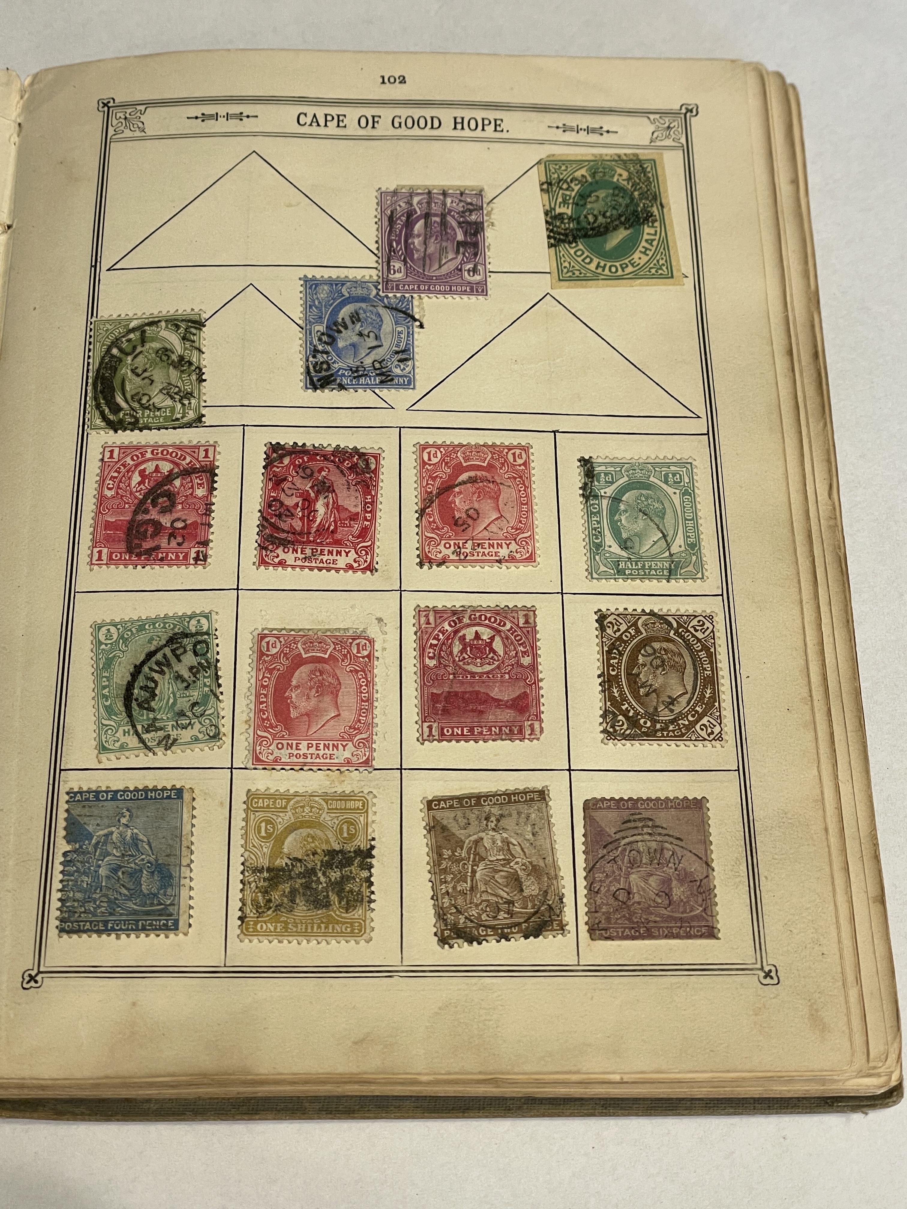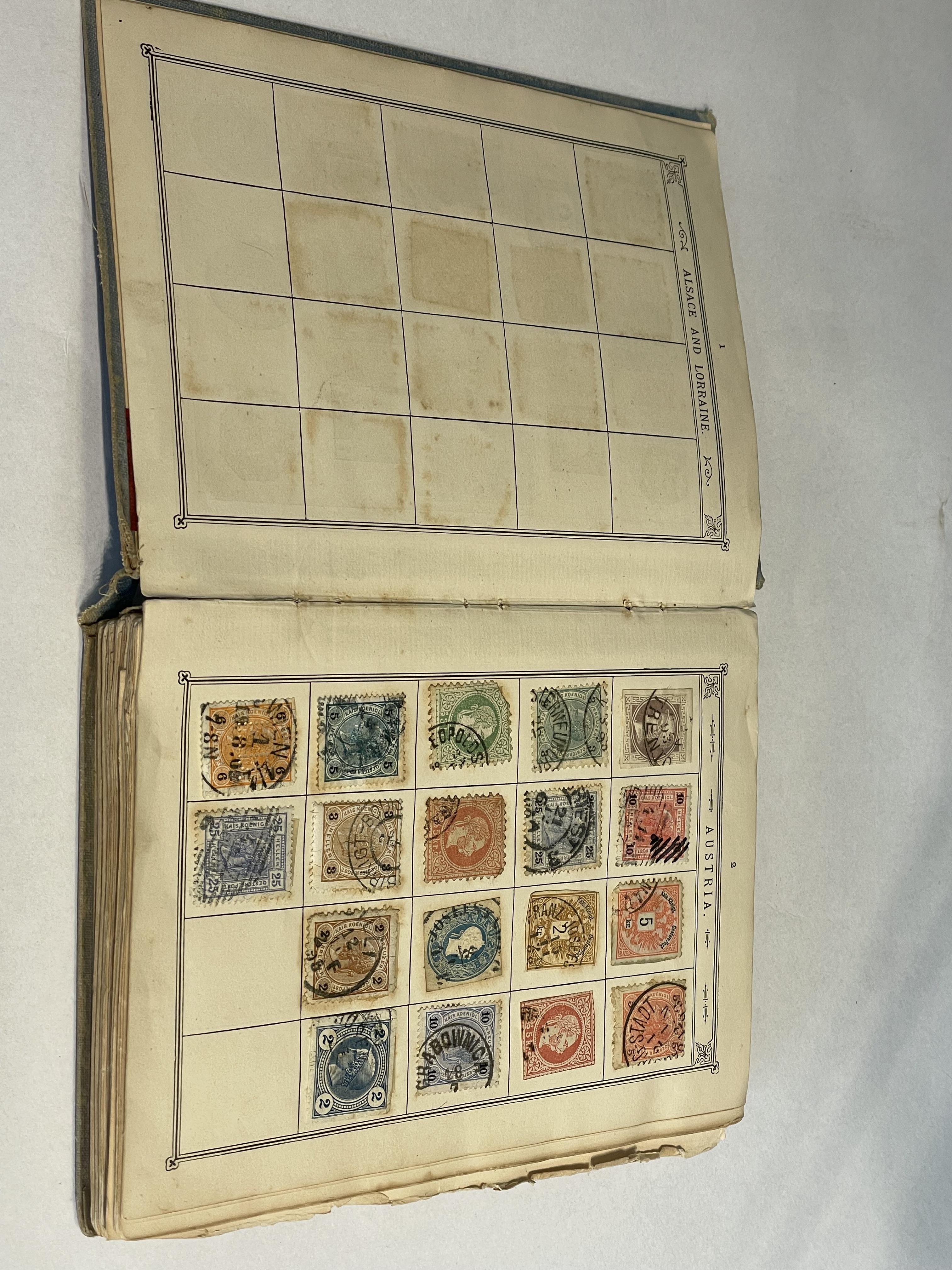 A 195 page part filled stamp album with a collection of stamps from around the world