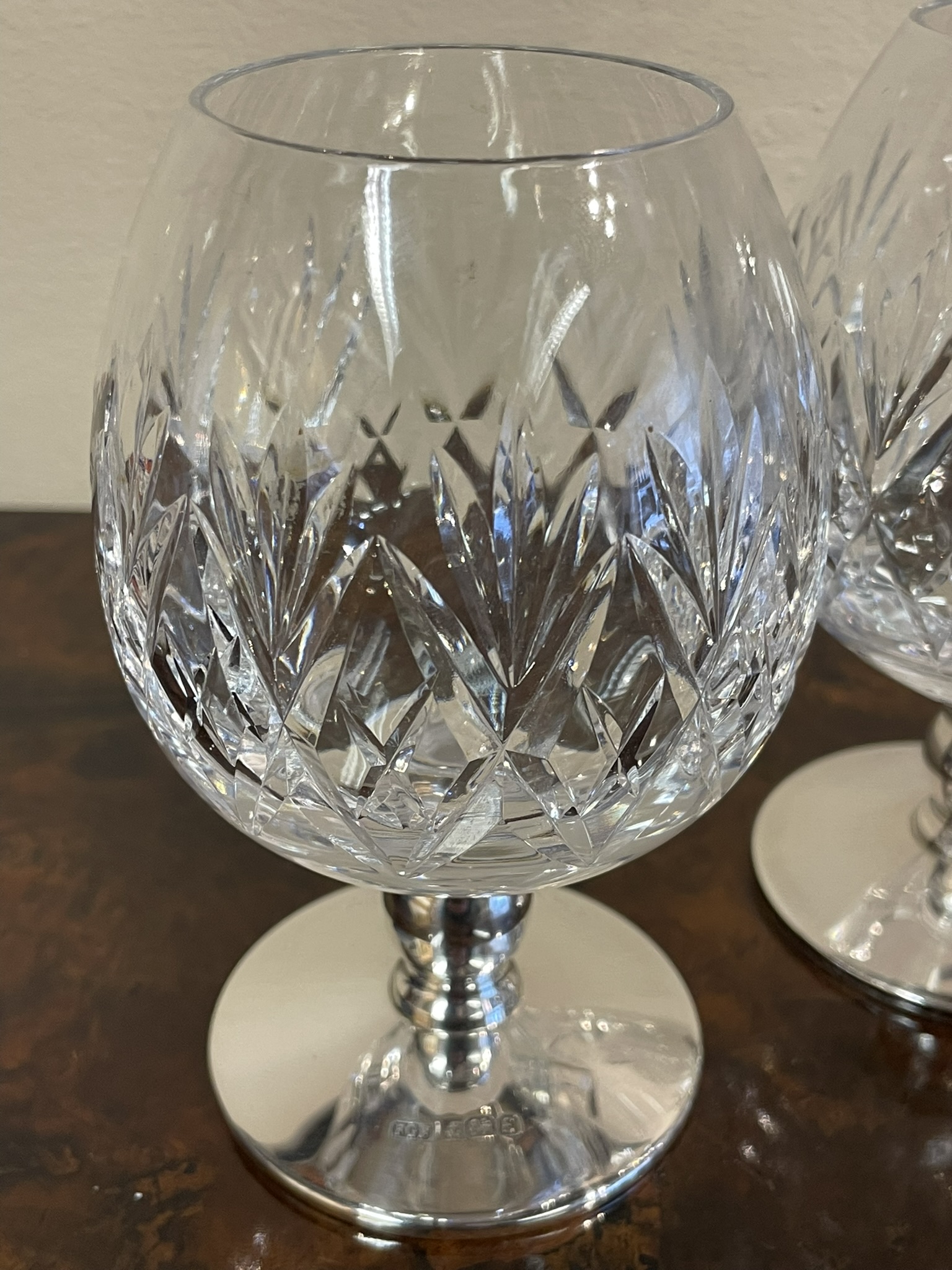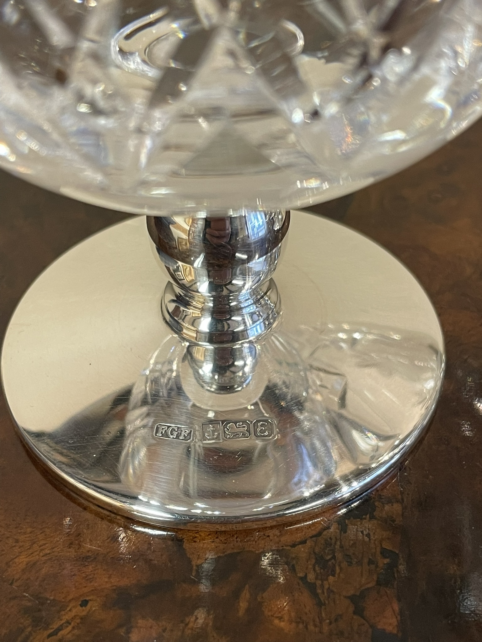 4 Cut Glass And Silver Based Brandy Glasses – Dated 1979