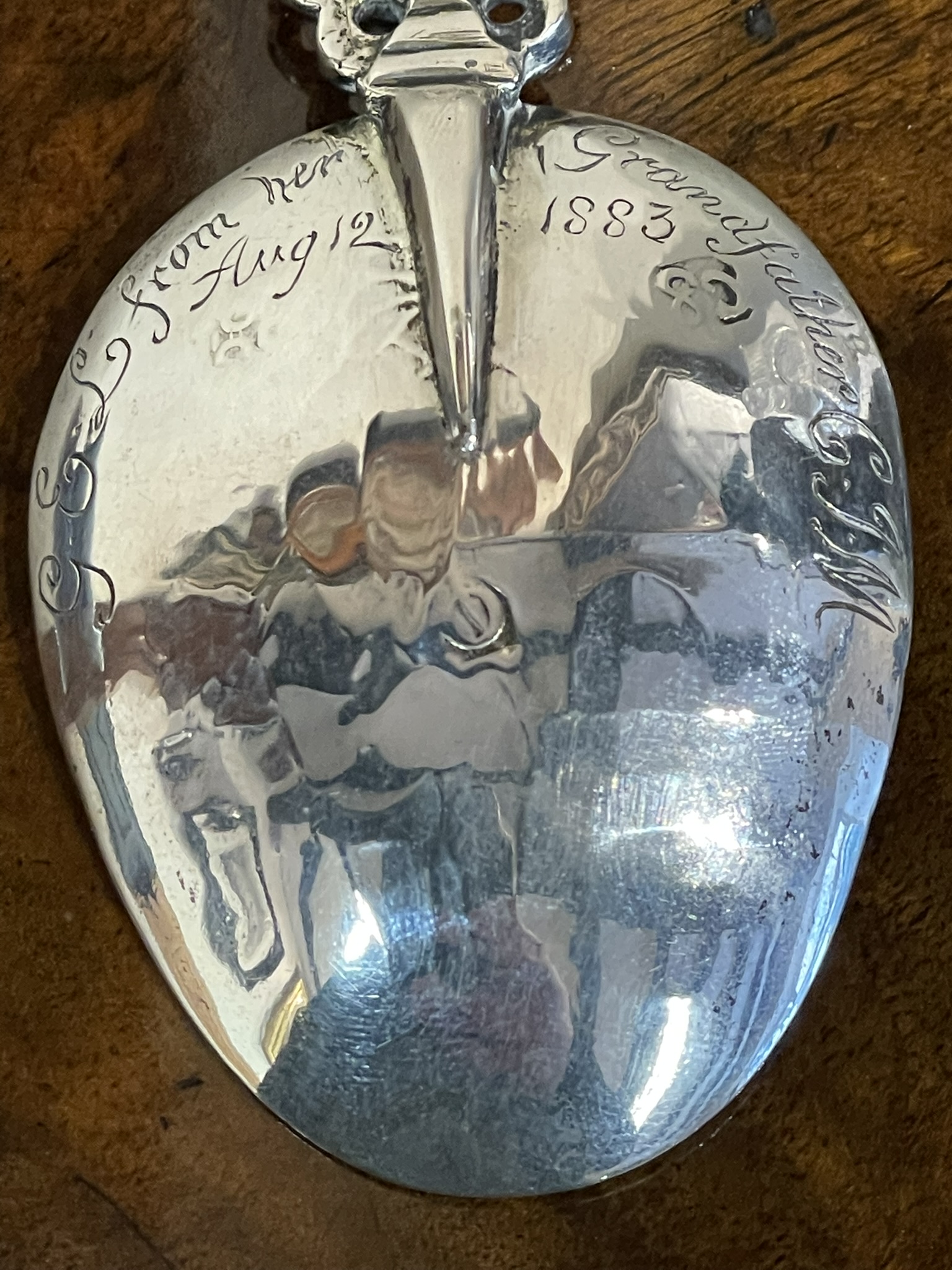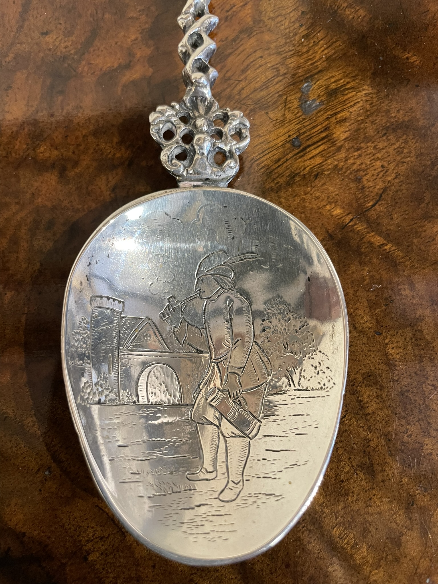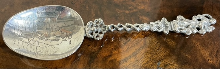 A late Victorian Dutch silver spoon dated 1883. 18cm long. 55grams