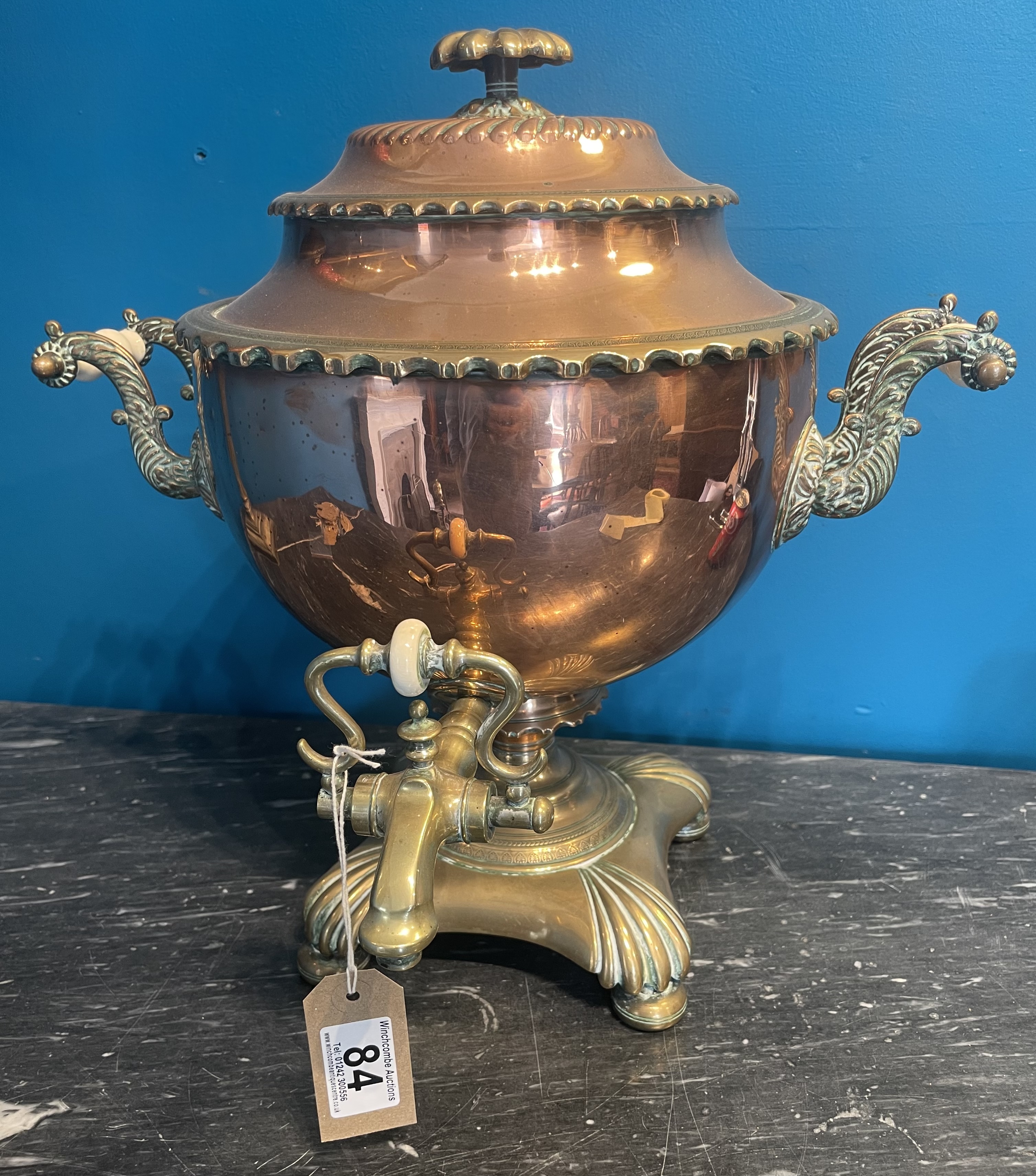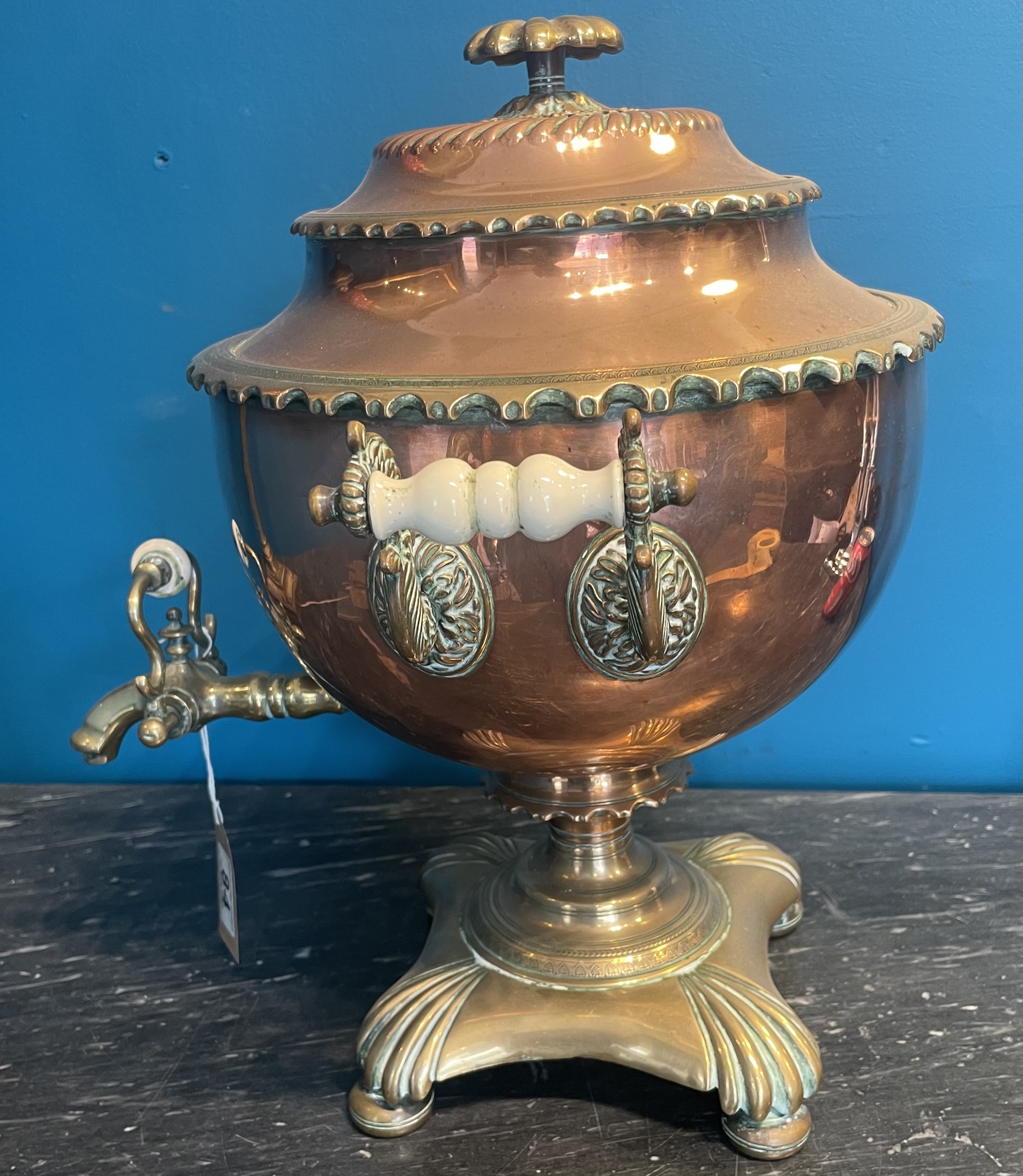 A Victorian Copper And Brass Samovar With Porcelain Handles