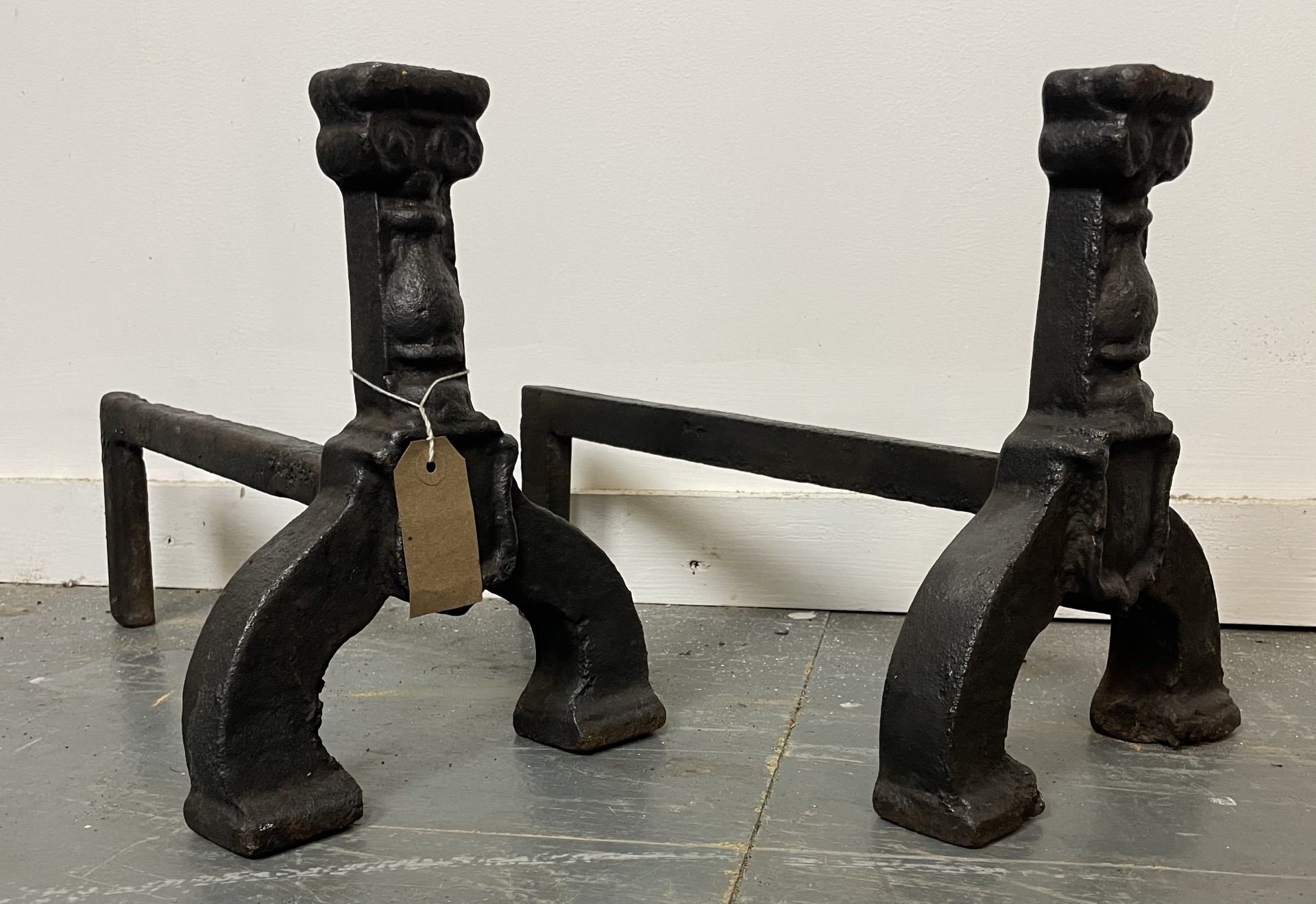 A Large Pair Of Cast Iron Fire Dogs 40.5cm length, 29cm height